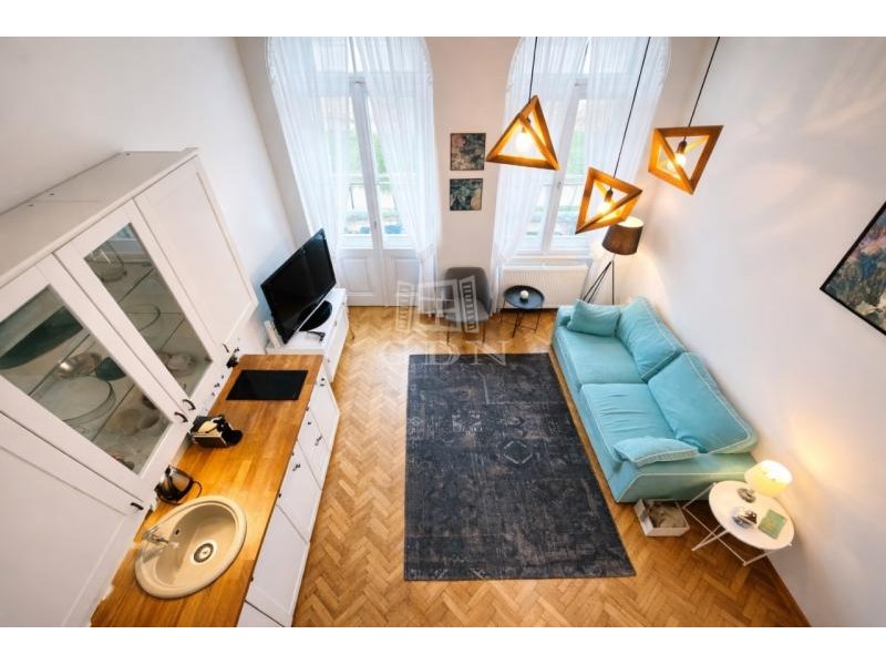 L-004781. Történelmi belváros közelében, műemlék jellegű épületben eladó egy 1. emeleti, 44 nm-es, erkélyes, klimatizált, nappali + 1 szoba + galéria elosztású, 2021-ben felújított téglalakás.