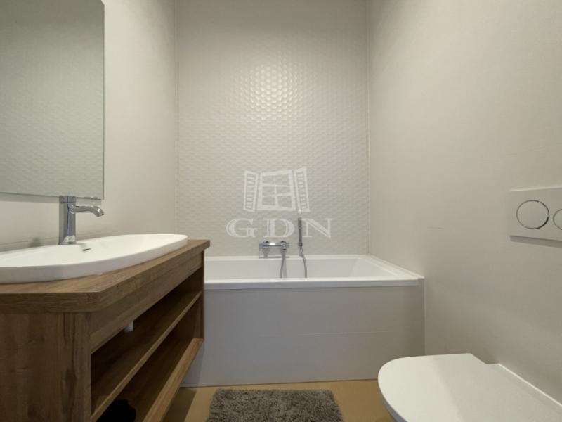 A fürdő és a wc, egy helységben található. A fűtésről – hűtésről és a melegvíz előállításról korszerű, modern, föld – víz hőszivattyú gondoskodik, padló – fal – mennyezeten keresztüli hőleadással. Az épület tetején elhelyezett napelemeknek köszönhetően a lakás rezsi költsége nagyon kedvező. A belső udvarról, akadálymentesen, lifttel közelíthető meg. A konyha modern gépekkel felszerelt. Parkolás fizetős övezetben és behajtási engedéllyel megoldható, fedett beálló bérlésére is van lehetőség a közelben található parkolóházban. A földszinten közös bicikli és babakocsi tároló került kialakításra. A közelben megtalálhatók kisebb boltok, éttermek, kávézók, és számos egyéb más szolgáltatók is. Autóbusz állomás 5 perc séta távolságra elérhető. Dohányzás és háziállat tartása nem megengedett. A lakás kialakításából adódóan 1-2 fő részére, családnak biztosít kényelmes és komfortos lakhatást.