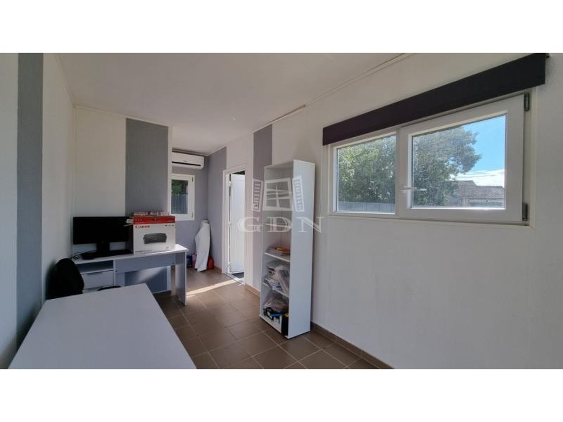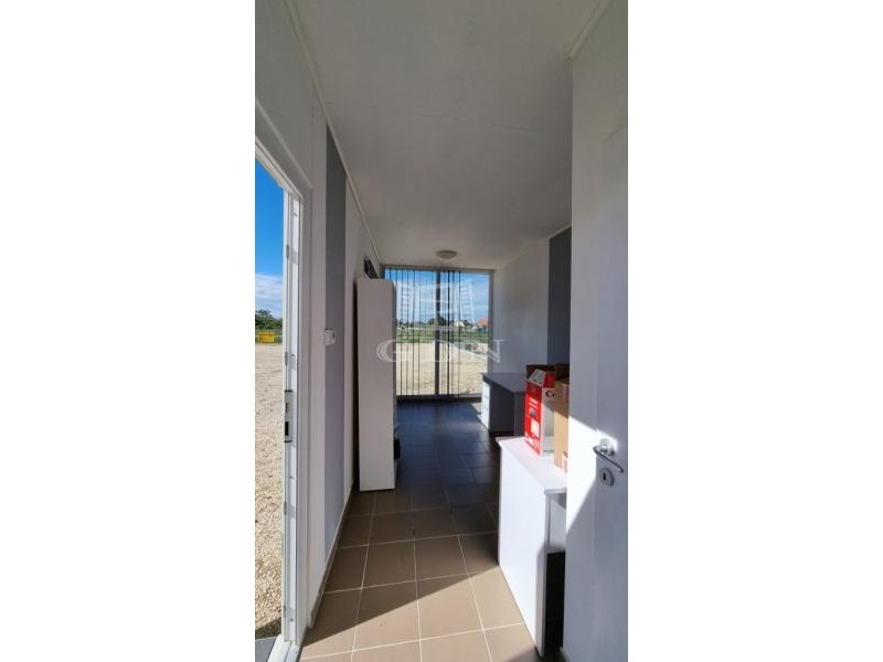 A klimatizált konténerirodában a víz, villany és a szennyvíz elvezetése megoldott. A murvával felszórt, kerítéssel körbekerített telephely széles úszókapuval rendelkezik.