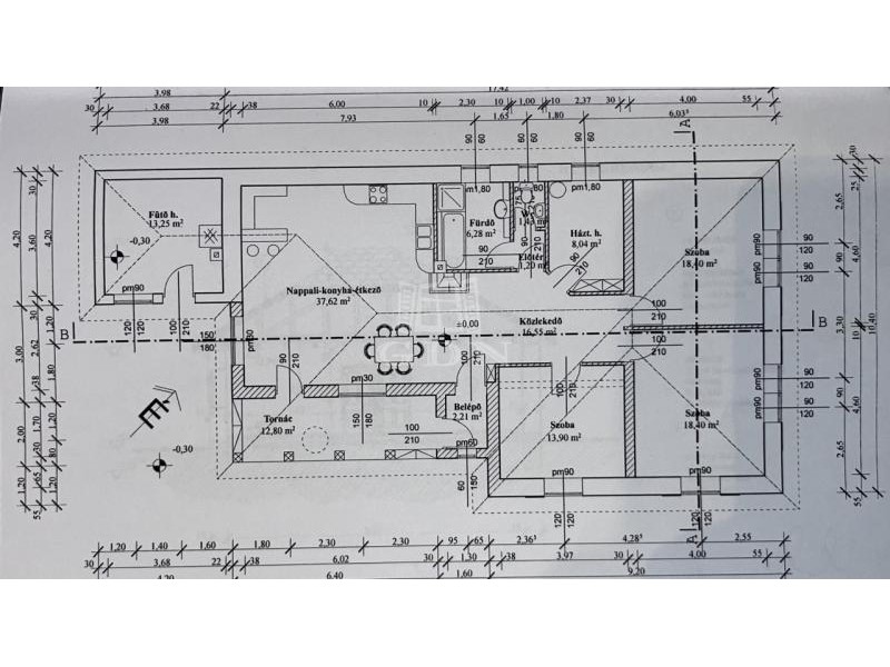 - Földszint: amerikai konyhás nappali, 3 hálószoba, mosókonyha, külön WC, fürdőszoba káddal