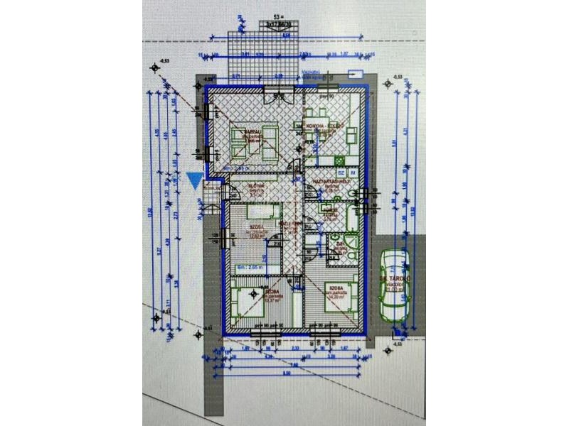 Lakótér: 4 hálószoba, amerikai-konyha, kamra, duplakomfort, 25nm terasz + garázs