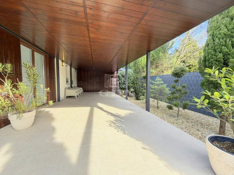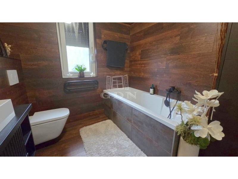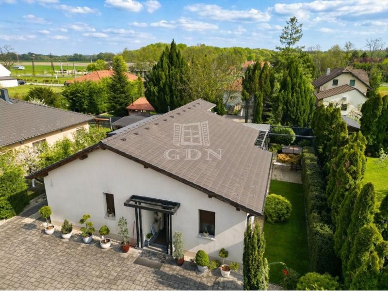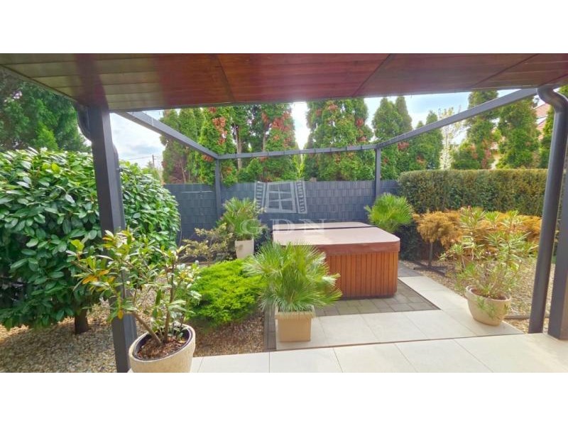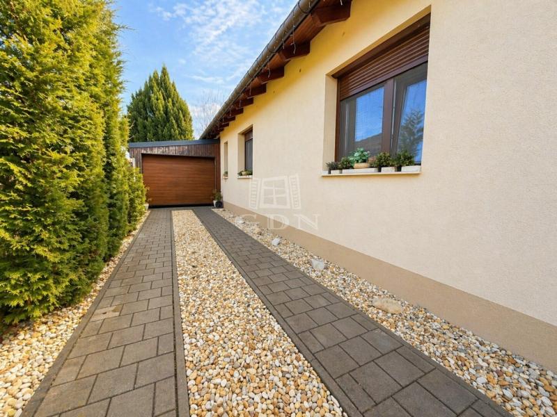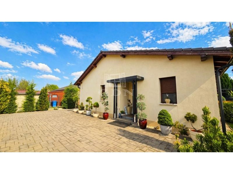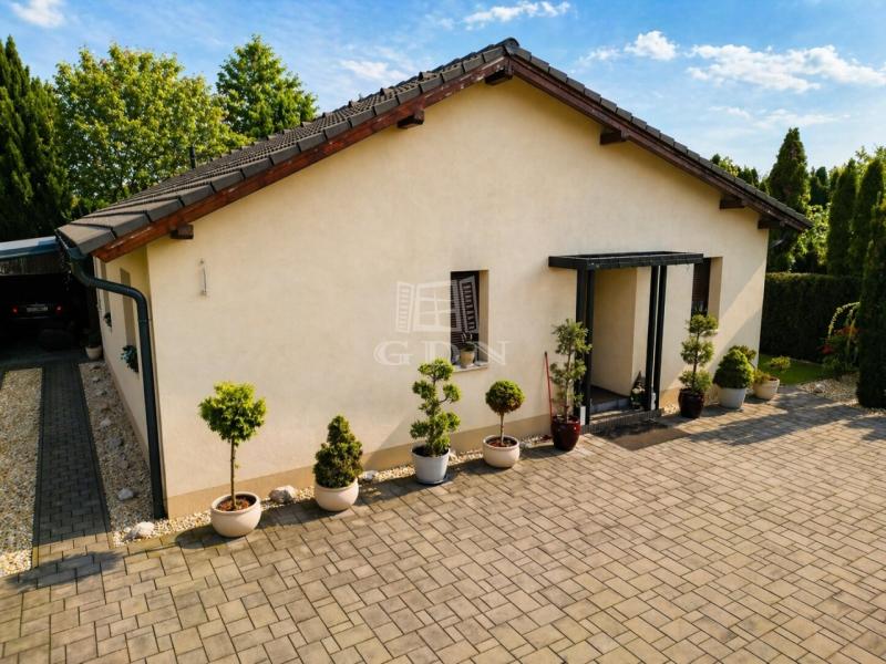 Ez a 2016-ban épült családi ház egy fiatal, rendezett lakóövezetben található, és letisztult építészetével, valamint magas minőségű kivitelezésével tűnik ki. Az elrendezése különösen jól átgondolt: a tágas, világos nappali–étkező a ház központi tere, amelyhez egy nyitott, mégis enyhén elkülönített konyha kapcsolódik. A fedett terasz és a télikert közvetlen kapcsolata harmonikus átmenetet biztosít a belső és külső terek között – ideális a mindennapokra és vendégfogadásra egyaránt.