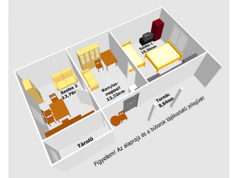 - 2 szoba,