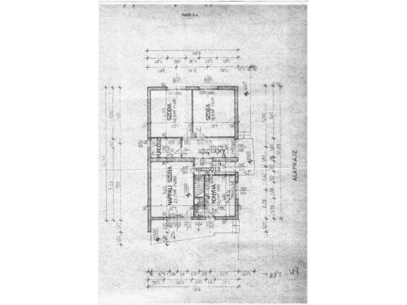 97 m2-es házban jelenleg 3 szoba, konyha, éléskamra, előtér+nappali és fürdő kapott helyet. Fűtése gázkonvektorokkal, a melegvíz-ellátása villanybojlerrel van megoldva