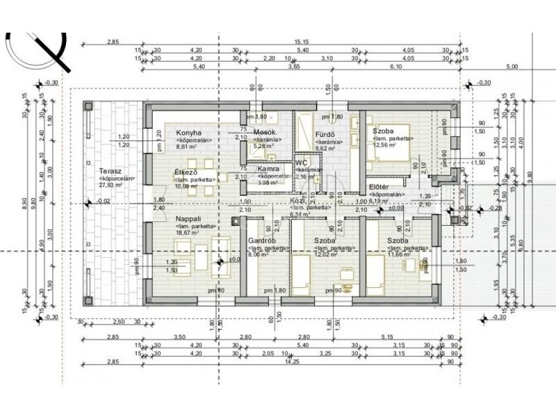-szerkezete 30-as Porotherm tégla + 15 cm-es grafitos szigetelés