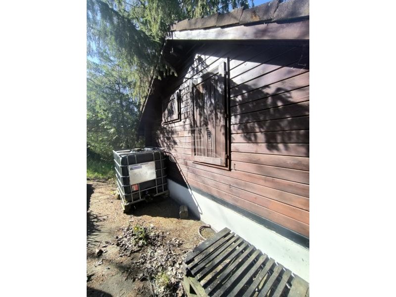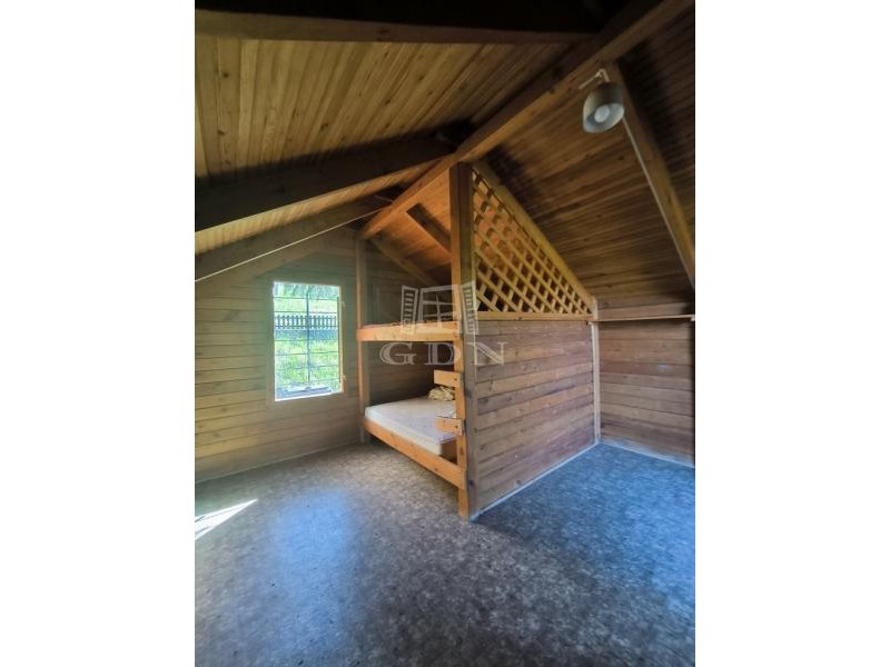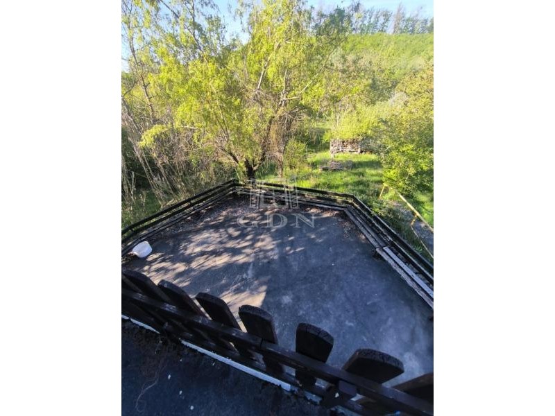 Nógrád PANORÁMÁS, zártkerti részén eladó 2 szintes kis ház, 3 helyrajzi számon lévő 1679 nm-es telken. A telkeken (821 nm+778 nm+80 nm) összesen 3 (!) kút van, a ház vízellátását innen lehetne megoldani. Az áramot egy napelem biztosítja jelenleg. Aki nem szeretne több közműszámlát, annak kimondottan jó lehet! A felső szint egylégterű, fa szerkezetű. Itt emeletes ágy kapott helyet, szobaként funkcionált. Az alsó szinten wc-s fürdő, étkező, két külső és egy belső bejárattal bíró tároló került kialakításra. Az épület jelenleg nincs feltüntetve a térképmásolaton, de kb. 20 éves. A telkek megnevezése a tulajdoni lapon "kivett zártkerti, művelés alól kivett terület". A telek végében egy darab erdő is a vételár része. Nagyon jó elvonulós hely lehet, a csend, madárcsicsergés garantált. A település a 2-es fő útról megközelíthető, a 331-es távolsági buszjárat Vác és Diósjenő között érinti Nógrádot, de a busszal eljuthatunk a szintén ezen a vonalon közlekedő S750-es vasútállomáshoz is. Igény esetén a szomszédos telek is megvásárolható, melyen szintén található kis ház.
