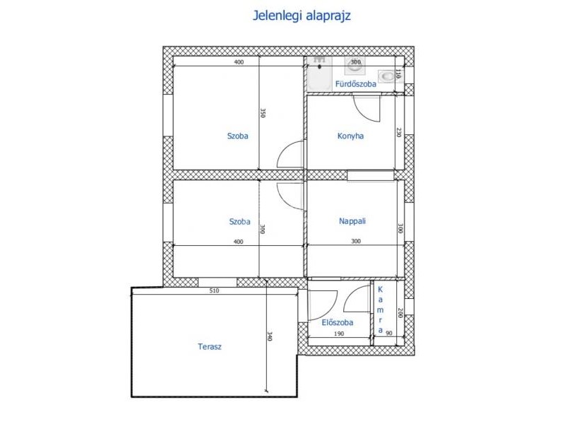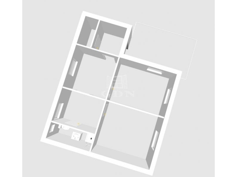 A HÁZ elrendezése 2 szoba, konyha, étkező, fürdőszoba, előszoba.
