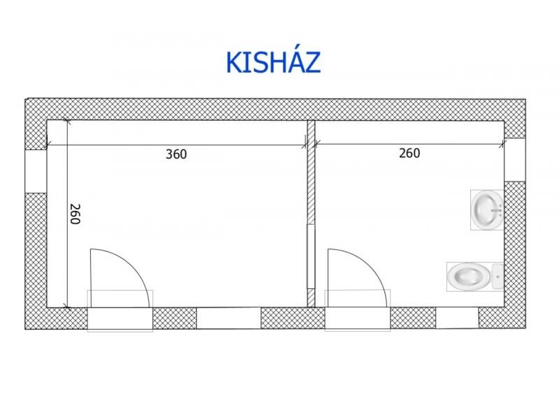 A KISHÁZAT nyárikonyhaként használták. Ide is be vannak vezetve a közművek. Ez az épület egy helyiségből és egy toalettből áll.