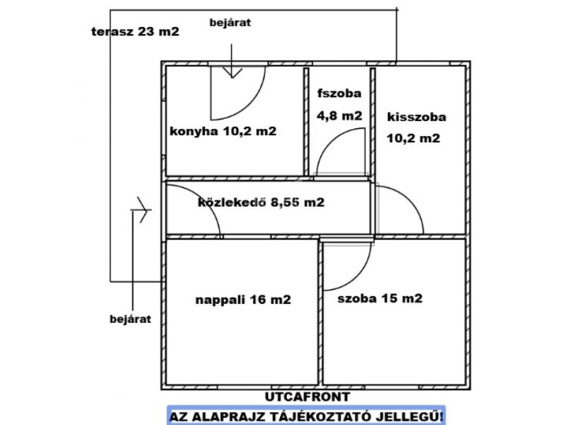 nappali, szoba, kisszoba, konyha, fürdőszoba, előszoba.