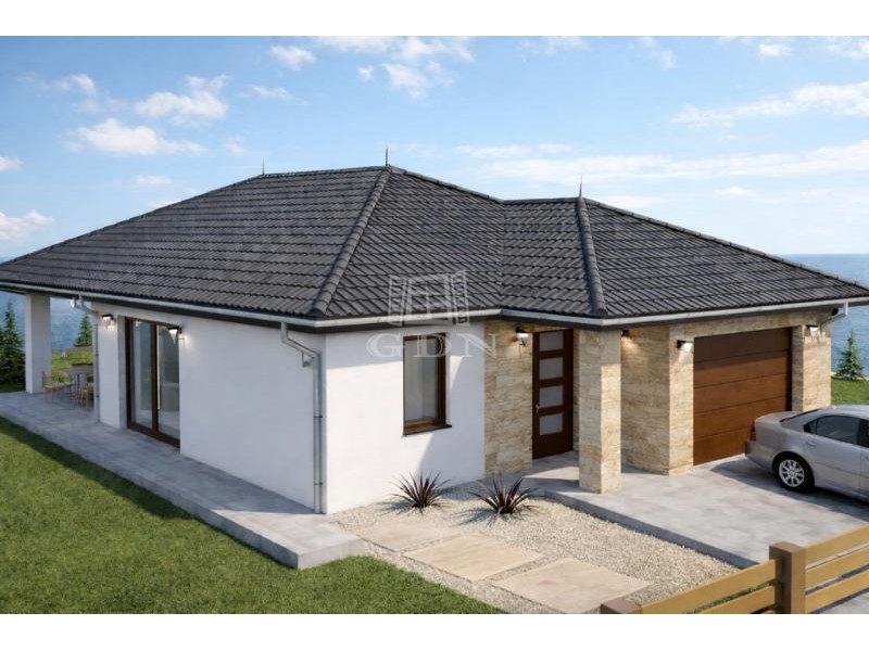 AZ ÉPÜLET beton sávalapra épül. Főfalak 30 cm porotherm téglából készülnek +15 cm dryvit szigeteléssel. Válaszfalak 10 cm téglából. A külső nyílászárók műanyag szerkezetűek, 3 rétegű üvegezéssel ellátva, rejtett redőnytok előkészítéssel. A födém fa szerkezetű, közetgyapot szigeteléssel. A tető cserép fedéssel készül.