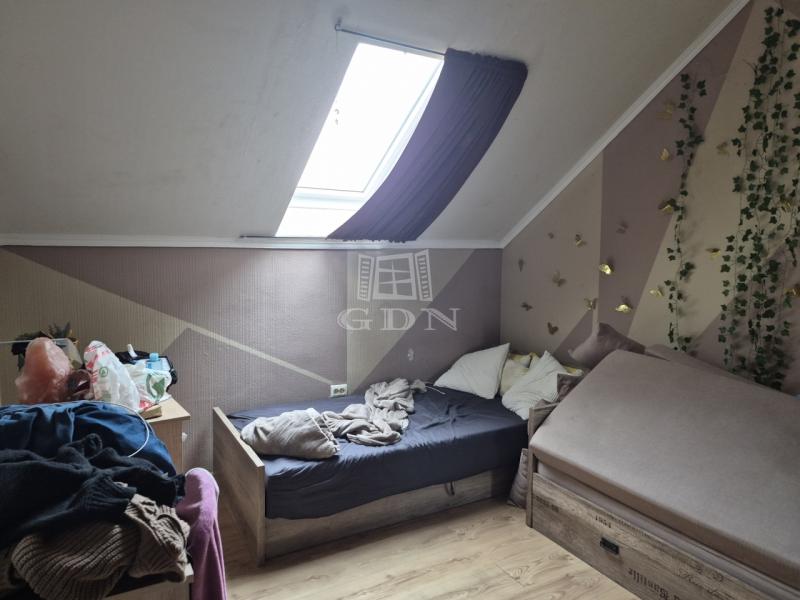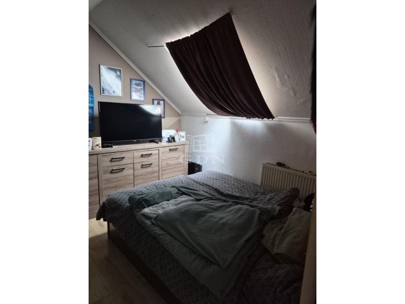 A tetőtérben egy kényelmes, jól átgondolt lakótér került kialakításra, mely az alábbi helyiségekből áll: