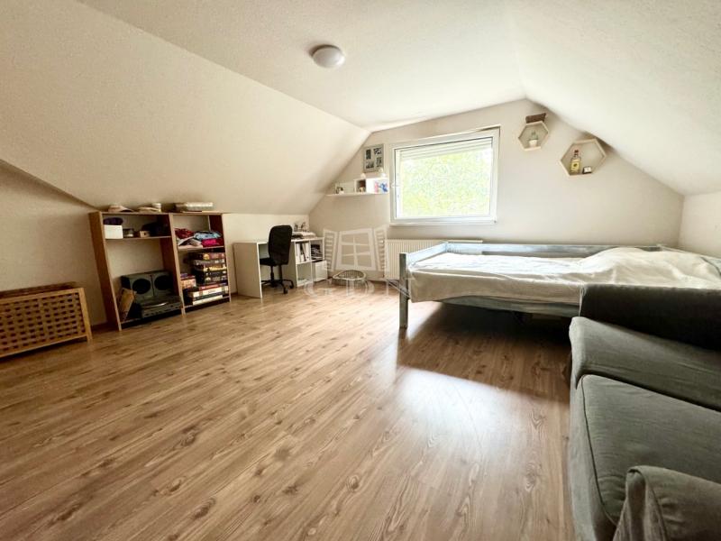 Érd kertvárosi környezetében, Tusculanum városrészben, csendes utcában, kertvárosi környezetben, 2016-ban épült, 2 lakásos ikerház jellegű társasházban, 300 nm-es önálló intim kerttel rendelkező, 1.emeleti, 102 nm-es hasznos lakóterületű, kiváló elosztású, nappali + 2 hálószobás, napos-világos D-K és D-NY-i fekvésű, alacsony fenntartású, kombinált gázcirkó fűtésű, jó állapotú, közvetlen kertkapcsolatos lakás, beépített, gépesített konyhával, telken belüli felszíni gépkocsi beállóval, rendezett kerttel eladó! Az ingatlan tehermentes rugalmasan birtokba vehető! A környék abszolút biztonságos, infrastruktúrája és közlekedése kitűnően ellátott. A közelben: élelmiszerboltok, oktatási intézmények, orvosi rendelő,, sportolási lehetőségek… Buszmegálló 100 méteren belül, mellyel Budaörs, valamint Budapest, Kelenföld vasútállomás kényelmes közlekedéssel rövid időn belül elérhetők. Az M7-es autópálya és az M0-ás körgyűrű 5 perce, a legközelebbi vasútállomás (Érd felső) 2 km-re. Ajánljuk mindazoknak, akik egy kellemes hangulatú, emberléptékű házban szeretnének lakni, távol a város nyüzsgő forgatagától, tiszta levegőre, nyugalomra vágynak, de mégis Budapest vonzáskörzetében maradnának. Érdemes megnézni! További információkert és a megtekintéssel kapcsolatban várom megtisztelő hívását! (hétvégén is) EA