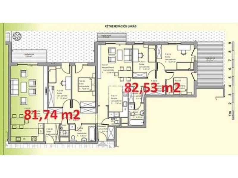2 NAPPALI + 5 SZOBA, 164.25 m2; erkély: 20 m2, földszinti lakás Bruttó: 230.000.000,-