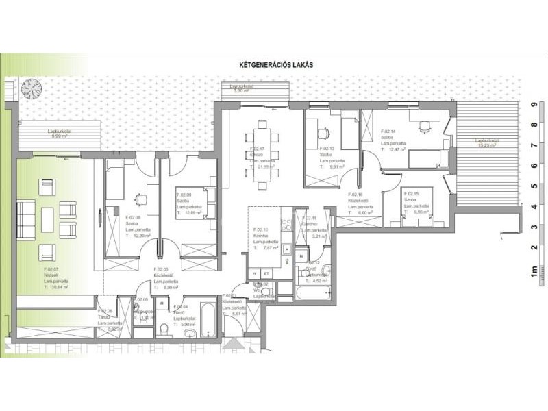 -F.01 lakás 78,79 m2; terasz: 8,82+12.64 m2; kert: 30,78 ár: ELKELT!