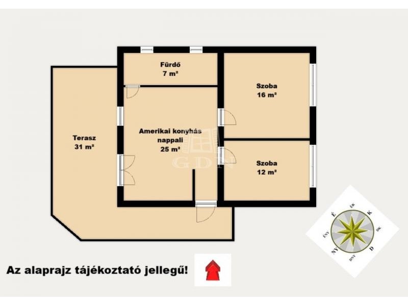 - AMERIKAI KONYHÁS NAPPALI + 2 szoba