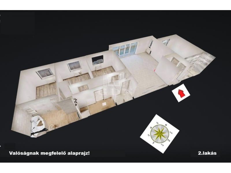 - Elrendezés: 4 hálószoba + nappali + 2 fürdő + kamra + háztartási helyiség