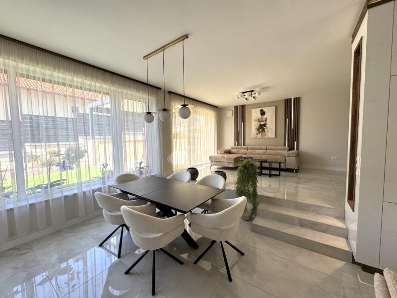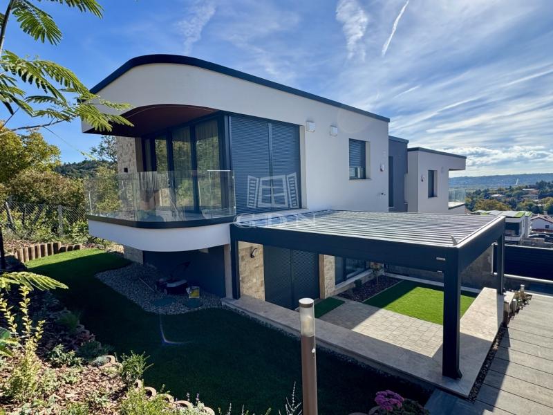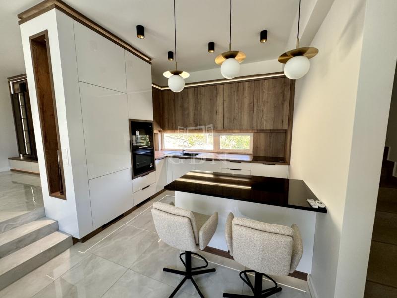 Kiadó modern ikerház - fél lenyűgöző panorámával Budaörsön! Hosszú távra kiadó egy exkluzív kivitelezésű, prémium minőségben berendezett és teljesen felszerelt ikerház, amely a legmagasabb elvárásoknak is megfelel. Az ingatlan elegáns, modern stílusban lett kialakítva, maximális kényelmet és otthonos hangulatot biztosítva bérlőinek. Főbb jellemzők: Új építésű luxusingatlan Nappali + 3 hálószoba 446 m²-es saját telek Rendkívül alacsony rezsi Napelemrendszer (8,8 kW) a zöldtetőn Hőszivattyús fűtés és mennyezeti hűtés Padlófűtés + hővisszanyerős szellőztetés Belső elrendezés: Földszint: Világos, teraszkapcsolatos nappali Teljesen gépesített, beépített konyha Kényelmes étkező Vendégmosdó Emelet (teljes belmagassággal): Szülői háló saját fürdőszobával és teraszkapcsolattal Két különálló hálószoba Második fürdőszoba Műszaki tartalom és extrák: ✅ Daikin hőszivattyú, szobánként szabályozható klíma ✅ Wavin mennyezeti hűtés/fűtés, padlófűtés ✅ Stiebel Eltron helyiségenkénti szellőztetők ✅ 3 rétegű Kömmerling nyílászárók alumínium redőnnyel ✅ LED világítás, beépített bútorok ✅ 2 autóbeálló, egyik elektromos autótöltővel felszerelve ✅ Karbantartásmentes műfüves zöldtető A ház tágas, világos terekkel, korszerű gépészettel, okosotthon-megoldásokkal és magas minőségű bútorokkal várja új lakóit. A parkoló 2 autó részére biztosít kényelmes beállást, a kertet kertépítő szakemberek parkosították, így nemcsak praktikus, de esztétikailag is lenyűgöző környezetet kínál.. Az otthon minden részlete gondosan megtervezett – a konyhától a fürdőszobákig –, így csak be kell költözni és élvezni a luxus nyújtotta kényelmet.