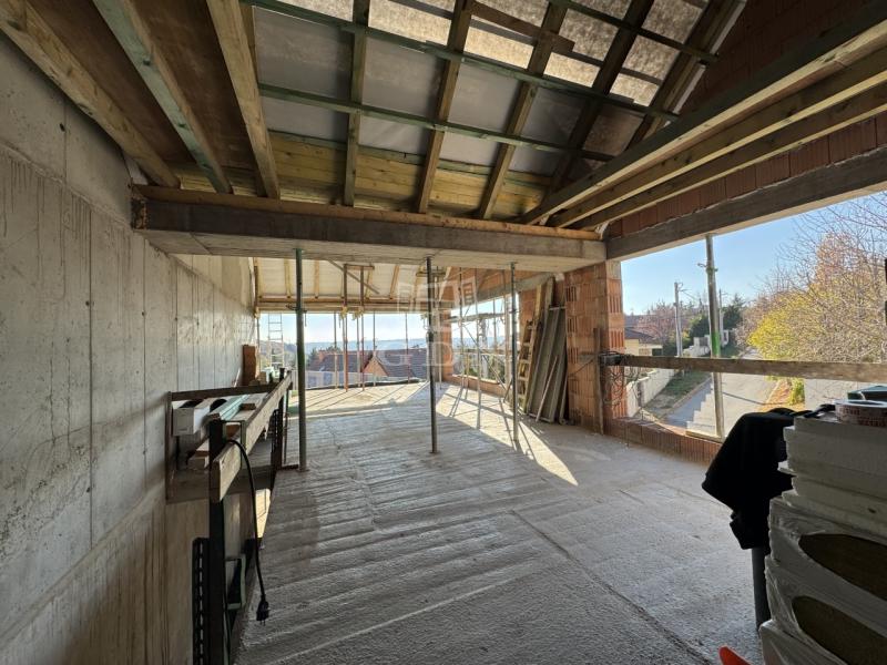 PANORÁMÁS CSALÁDI HÁZ, FENNTARTHATÓSÁG LUXUS KIVITELBEN! Csendes, domboldali környezetben, mégis kiválóan megközelíthető helyen kínáljuk ezt a prémium kategóriás, nettó 219 m²-es, nappali + 3 szobás, dupla férőhelyes garázzsal, új építésű panorámás önálló családi házat Budaörsön, a Kőhegy és Odvashegy között. Tágas, világos terek, kiváló anyagok, modern technológia, nagy terasz és páratlan panoráma garantálja, hogy otthon lenni öröm legyen. Főbb jellemzők - /Műszaki részlet/: - Két szintes kialakítás: alsó szinten dupla garázs (2 autó részére), két tágas gyerekszoba, fürdőszoba, valamint szülői hálószoba saját fürdővel - Emeleti szint: impozáns, egy légterű nappali + étkező + konyha + kamra blokk, külön WC és előszoba - A nappaliból közvetlen átjárás a 34,3 m²-es teraszra, ahonnan lenyűgöző panoráma nyílik a környező hegyekre - Okos otthon rendszer (Loxone) – fűtés, légkondicionálás/hűtés, világítás, motoros zsaluzia mind egy érintéssel vezérelhető - Korszerű gépészet: levegő–víz hőszivattyús rendszer (9 kW), padlófűtés minden helyiségben, mennyezethűtés (szobák+ nappali-konyha-étkező), központi szellőztető rendszer, központi porszívó Szerkezet, anyagok, megoldások: - Alapozás: 30 cm monolit vasbeton lemez + sávalap - Falazatok: Porotherm 30 N+F kerámia rendszer + méretezett vasbeton falak - Födémek: 25 cm monolit vasbeton lemez - Tető: 42°-os nyeregtető, Terrán Zenit gránit cserépfedéssel - Homlokzati hőszigetelés: 15-20 cm grafitos EPS-80, vakolt kivitel - Nyílászárók: háromrétegű üvegezésű alumínium szerkezetek, motoros zsaluzia - Belső nyílászárók: CPL felületű, fehér színű ajtólapok - Okos-otthon rendszer: Loxone épületautomatika Madárcsicsergős nyugodt környék, mégis jellemző a kiváló infrastruktúra, a zöldövezeti hangulat. Tömegközlekedéssel is és gépjárművel is könnyedén megközelíthető a város. Az utcától séta távolságra megtalálható, természetvédelmi terület, kirándulóhelyek, de pár perc alatt elérhető a bevásárlóközpont, sportpálya, iskolák, óvodák is. A beruházó és a kivitelező egyaránt nagy múltú, megbízható vállalkozások – referenciáik leellenőrizhetők, ami garanciát jelent a magas minőségre. Nagyon IGÉNYES KIVITELEZÉS, magas műszaki tartalommal, minőségi anyagok felhasználásával épül ( részletes Műszaki leírással és további anyagokkal rendelkezem.) MÉRETEK, TÁJOLÁS, ELRENDEZÉS, AZ ALAPRAJZOKON. ( Belső átalakítás-kialakítás a Vevő igényei alapján megoldható ) TERVEZETT ÁTADÁS: 2026. III. negyedév! Kedvezményes hitelek felvehetők! (Szükség esetén ingyenes hitelügyintézéssel) A VÉTELÁR KULCSRAKÉSZ ÁLLAPOTOT TARTALMAZZA. Az ingatlan megtekintése előre egyeztetett időpontban lehetséges, akár hétvégén is. Amennyiben felkeltette az érdeklődését, további kérdéseivel kapcsolatban várom jelentkezését!