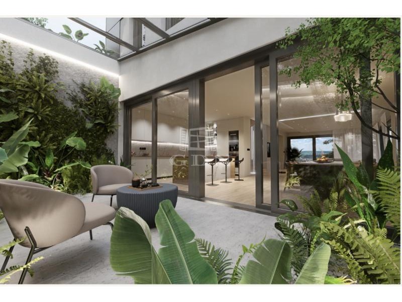 Wellness & Relax: 46 m²-es panorámás terasz és egy egyedülálló, 21 m²-es belső japánkert, amely a ház szívét alkotja.