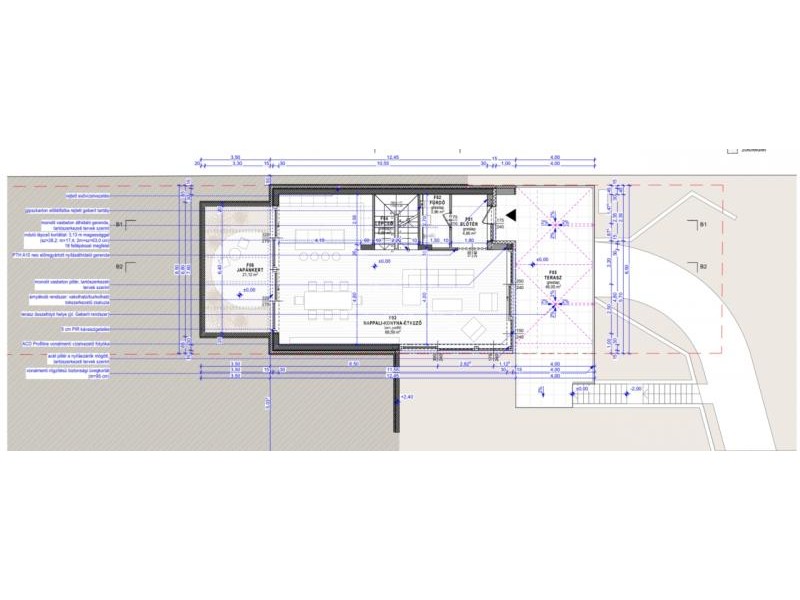 Szerkezet: YTONG falazat 15 cm szigeteléssel, PIR hőszigetelt lapos tető.
