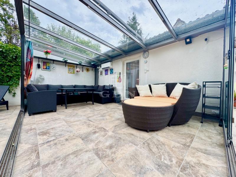 Karnyújtásnyira Bp III. kerületétől, Budakalász üdülőövezetében, (Üh-H) csendes aszfaltozott mellékutcában, közvetlen Dunaparti, 720 nm-es telken 1980-as években, tégla falazattall épült, körbejárható, kétszintes, 72 nm-es hasznos lakóterületű,(alapterület 42 nm) 2 szobás, étkező konyhás, dupla teraszos, (20+50nm) elektromos cirkó fűtésű, napos-világos fekvésű (É-K-D-NY), alacsony fenntartású, 2020-ban, teljes körűen, magas műszaki szinvonalon felújított, szigetelt, klimatizált családi/ház/nyaraló, beépített, gépesített konyhával, 17 nm-es igényesen kialakított, fűthető és zárható téli kerttel, elektromos redőnyökkel, 50 nm-es kerti tárolóval, fúrt kúttal, gondozott kerttel eladó.