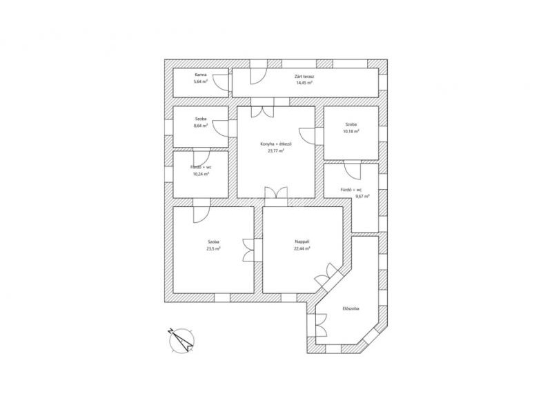Elrendezés: Tágas nappali + 3 szoba, 2 fürdőszoba