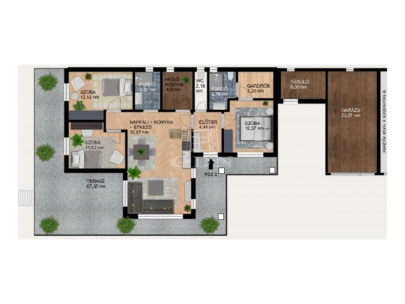 Privát, tágas kert 900 nm – zavartalan élettér.