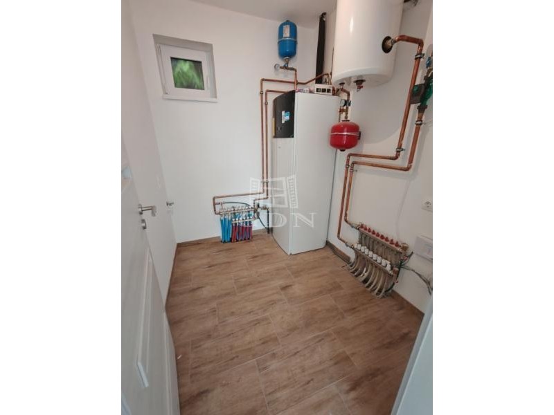 Háztartási helyiség, ahol helyet kapott a mosógép kiállás és szárító gépnek is van hely valamint a Daikin hőszivattyú.