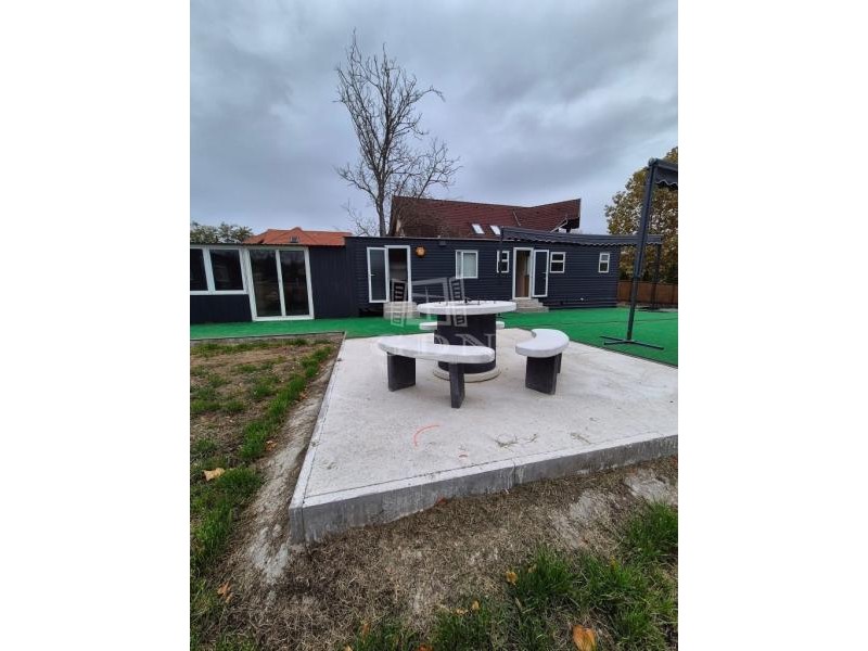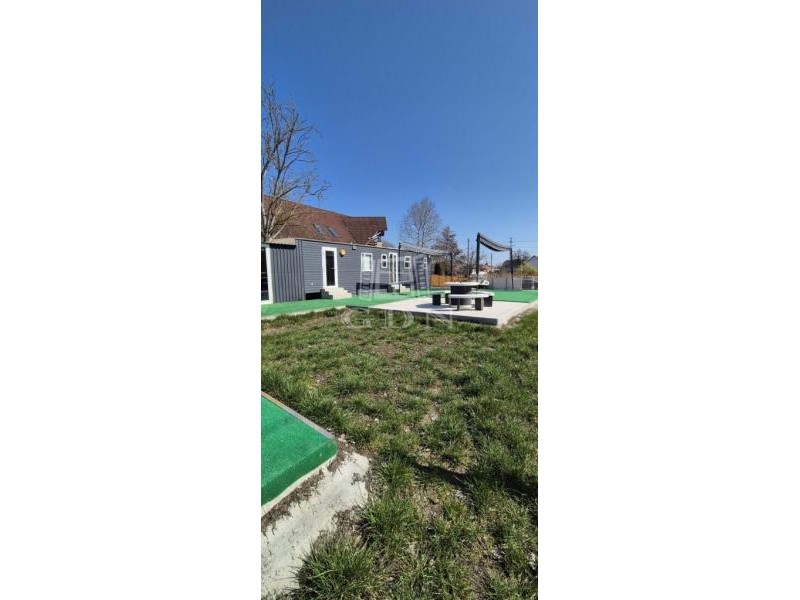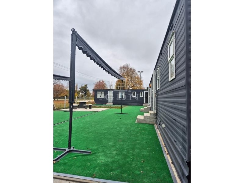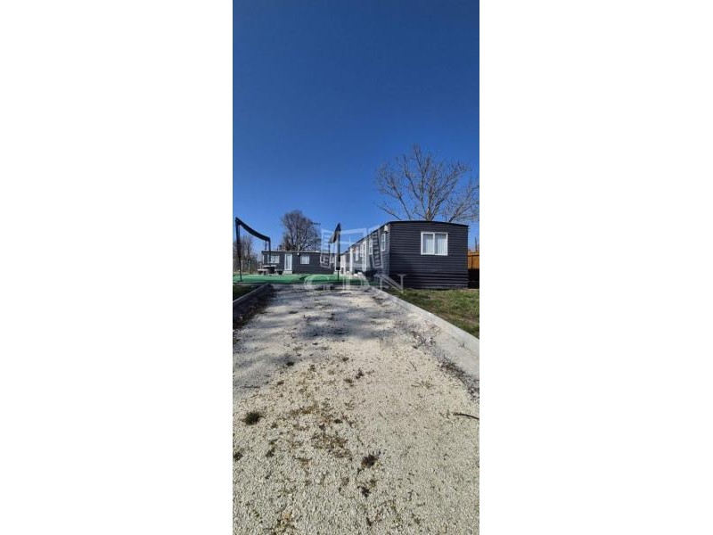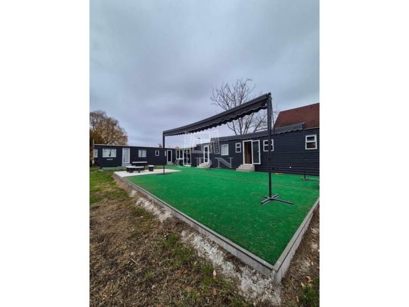 A telken két mobilházból álló, összesen 100 m² lakóterületű épületegyüttes található, amely télen-nyáron lakható, teljes közművel ellátott (víz, villany), valamint hűtő-fűtő klímával felszerelt.