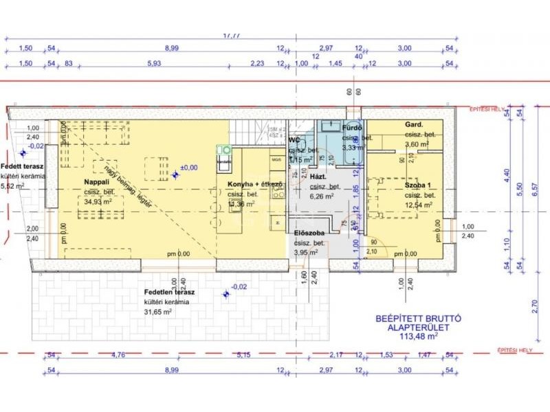 A telekre 2 szintes, összesen 145 nm-es hasznos alapterületű családi házat terveztek, melynek földszintjén amerikai konyhás nappali, fürdő, háztartási helyiség, és egy szoba kap majd helyet. Az emeleten 2 hálószoba, fürdőszoba, és külön WC kerül kialakításra. Amennyiben a vevő szeretné, a jelenlegi tulajdonos részletes megbeszélés után, kulcsrakészre építi a házat.