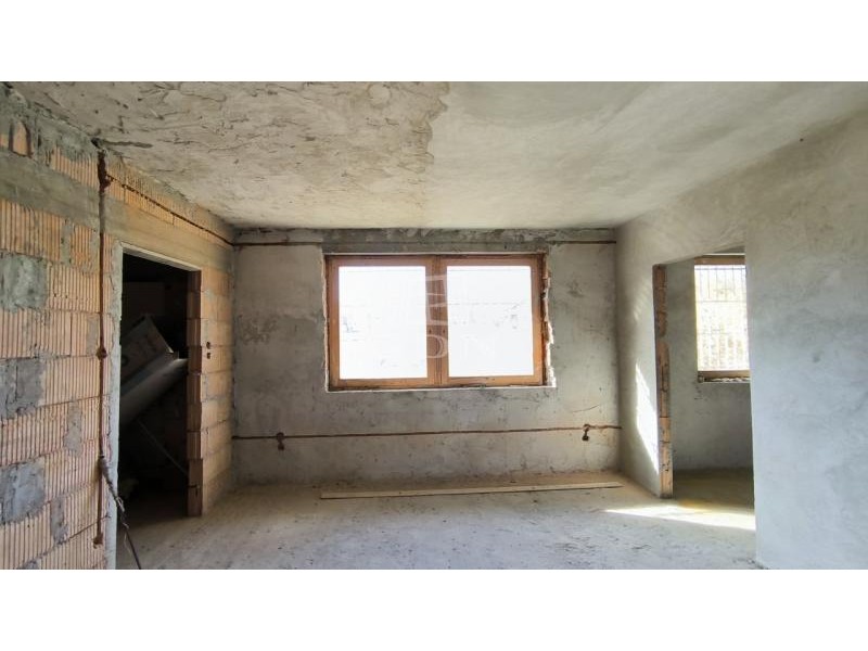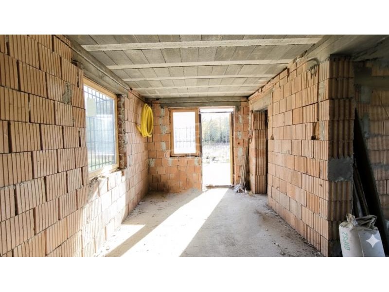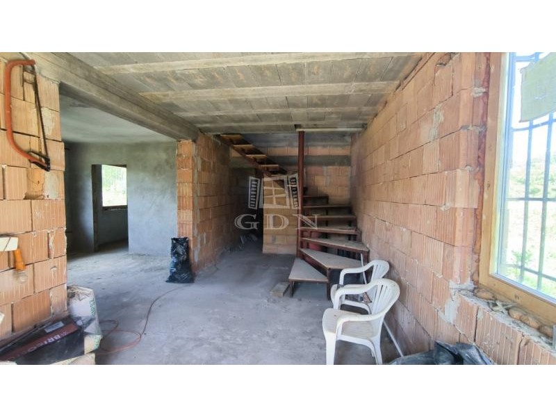 Domonyvölgy csendes, átmenő forgalomtól mentes utcájában eladó egy befejezetlen, 94 nm-es családi ház jellegű ingatlan 2141 nm-es telken!