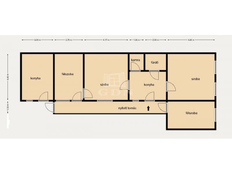 Eladó felújítandó vagy bontandó ház Domonyban Domony csendes részén eladó egy felújítandó vagy bontandó ház kiváló lehetőségekkel. Főbb jellemzők: Telek mérete: 552 m² (ház és udvar) Közművek: Teljes közművesítettség (víz, csatorna, áram, gáz). Ház: Vegyes falazat (tégla és vályog), 2 nagyszoba 2 félszoba 2 konyha (egyikben sparhelt) kamra fürdő, WC Fűtés: Konvektoros fűtés, gáztűzhely. Állapot: A ház szerkezete vegyes falazatú, felújítandó állapotban van. A tetőt néhány éve cserélték, viszont vízkár következtében a pince beomlott, valamint az utólag épített félszoba megsüllyedt. További lehetőségek: A külön helyrajzi számon szereplő 550 m²-es kert beépíthető, akár másik utcából megközelíthető. Ár: 12 millió Ft A telek 14 méter széles. További lehetőségek: Külön helyrajzi számon nyilvántartott, 550 m²-es kivett beépítetlen terület is eladó. Önállóan, másik utcáról is megközelíthető. A két telek kertje összeér, az ingatlanok együtt vagy külön is eladók.