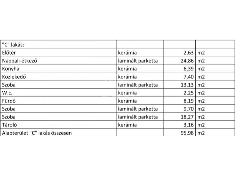 C-lakás 95,98 nm 373 m2-es telekrésszel.