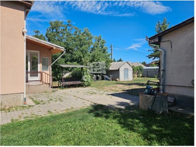 Az udvaron található egy szabadon álló garázs, egy ásott kút, melyről az öntöző rendszer működik.