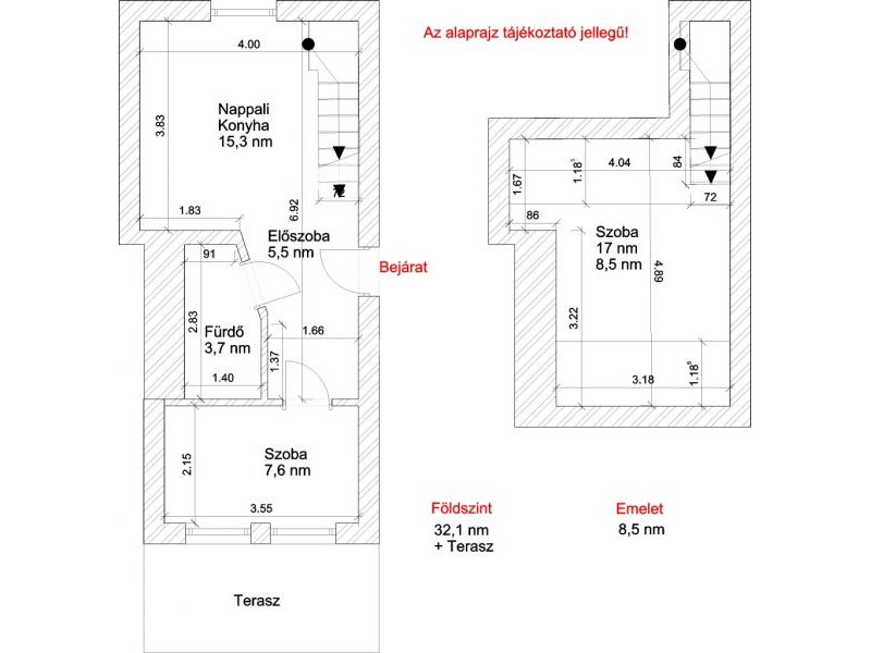 • Kétszintes kialakítás,