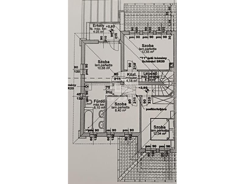 Emelet: 4 hálószoba, fürdőszoba mosdóval.