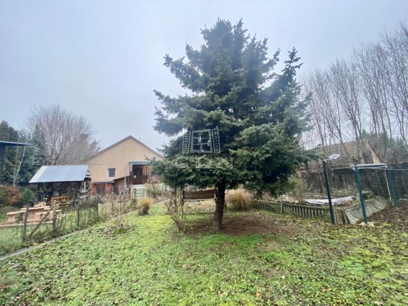 A kert igazi különlegesség: több, pihenésre alkalmas rész került kialakításra, keményfából épített fedett kiülővel, dupla gépkocsi-beállóval, kerti tóval, valamint gabion kerítéssel és kövekkel díszített magas ágyásokkal, örökzöld növényekkel. A kellemes hangulatról 2 db hintaágy is gondoskodik. A magas növényzettel körbevett telek teljes intimitást biztosít, elzárva a külvilágtól.