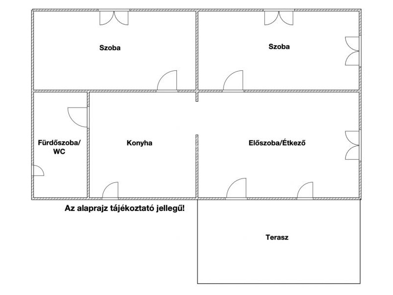 A teraszról az előszobába lépve került kialakításra az étkező, ahonnan nyílik egy szoba, illetve a konyha, melyben iparossal, egyedileg méretre készített konyhabútor található. A konyhából nyílik a fürdőszoba illetve még egy szoba. A fűtést gáz cirkó rendszer biztosítja.