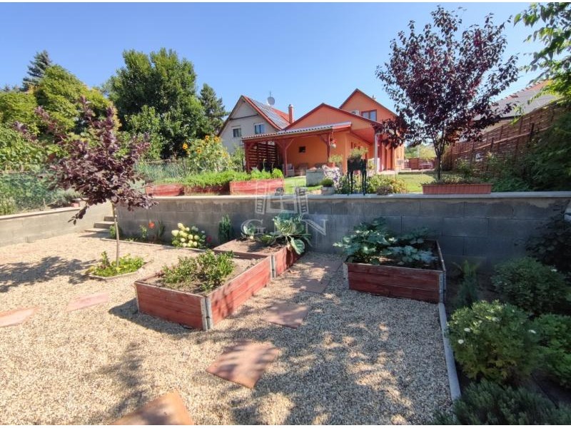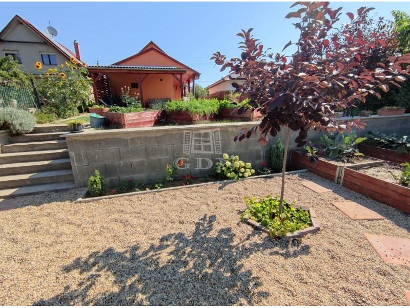 Az ásott kúttal is rendelkező, szép gondozott, füvesített kertben dísz-és gyümölcsfák, cserjék, virágok, magaságyások helyezkednek el, lehetővé téve az aktív és passzív pihenést egyaránt, valamint itt lett kialakítva egy medence és nyugágyak felállítására alkalmas szeparált pihenő tér is.