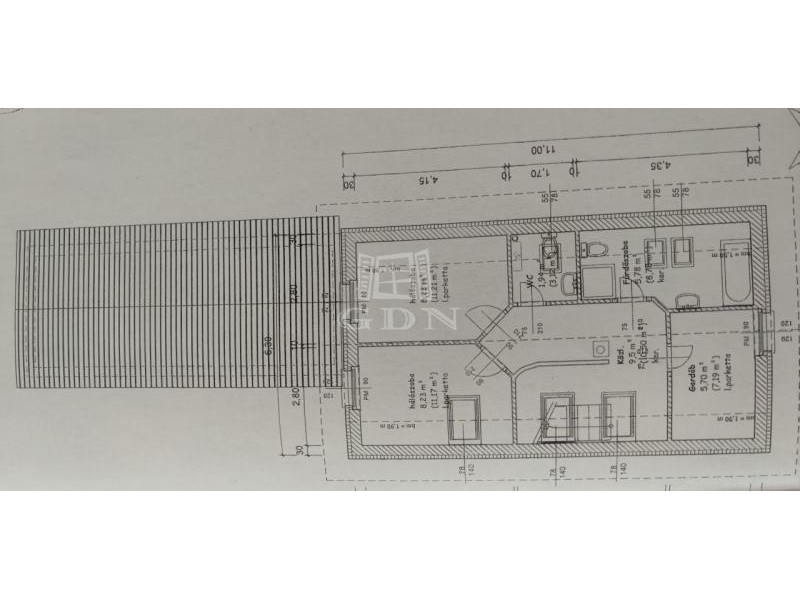 Az ingatlan két szinten 94 nm hasznos lakótérrel rendelkezik, konyha-ebédlő - nappali+ 3 hálószoba elosztású, dupla komfortos.