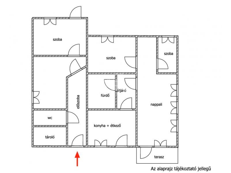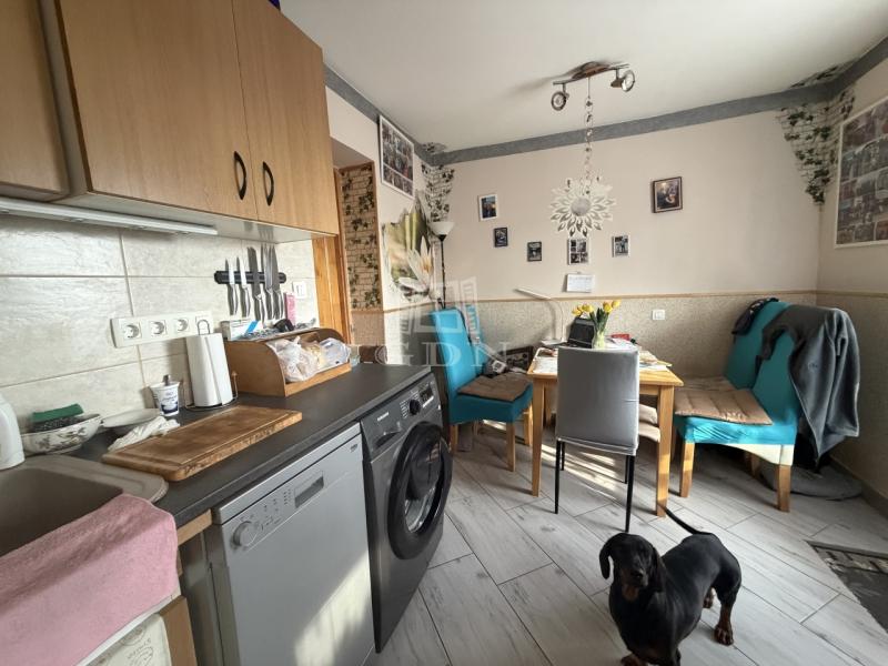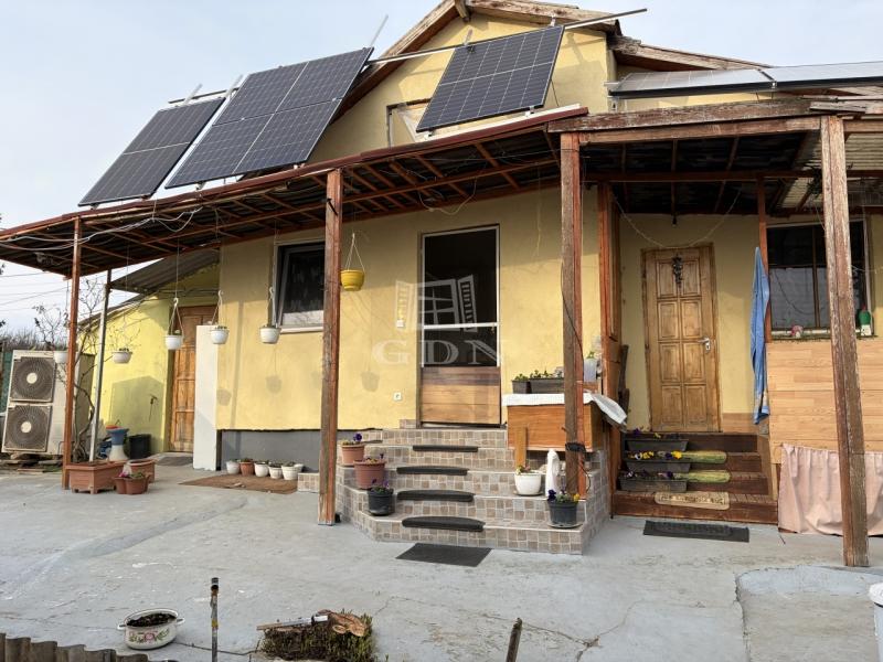 Az első, nagyobbik részen nappali, konyha, 2 hálószoba, és egy fürdőszoba található.