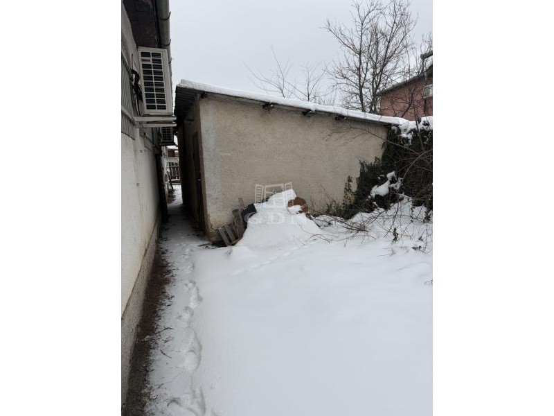 A ház elkőkertet követően helyezkedik el a telken, majd mögötte egy tégla szerkezetű kb 15 nm nagyságú tároló található, amely mellett 6 autó beállására alkalmas udvar fekszik. A terület rendezett, körbekerített.