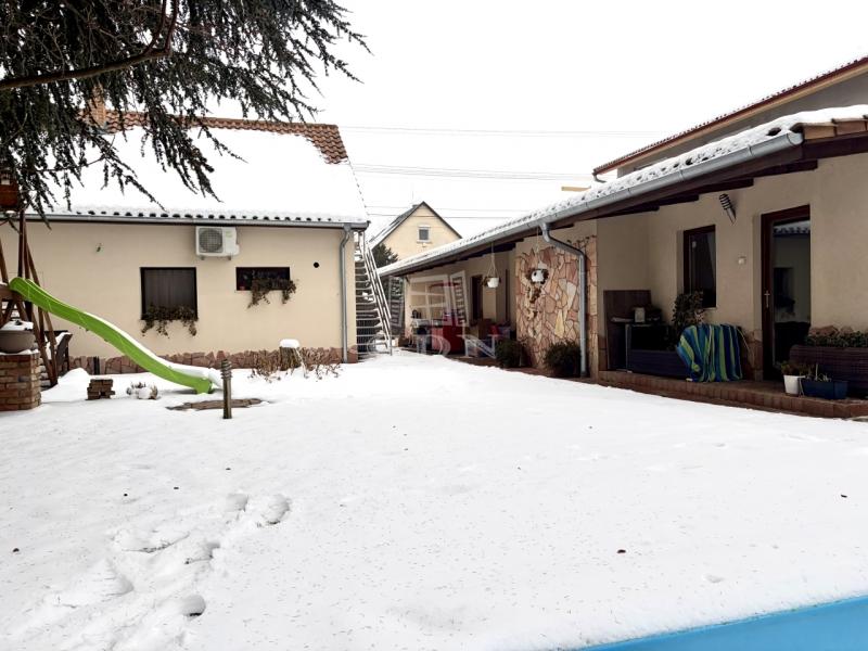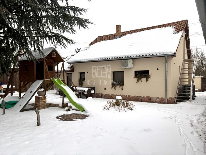 Eladásra kínáló Fóton egy felújított, kétgenerációs családiházat, amellyel egy udvarba kialakításra került egy külön kisebb házban 2 külön szoba, fürdőszobával. Ezen túl saját garázs és egy feszített víztükrös medence is az ár része. A gondozott nagy méretű kertben levő kerti búbos kemence, és a sütögető kiváló helyszíne a kikapcsolódásnak. A nagyobbik ház téglábl épült, erősített fafödém, cserép tető, és 10 cm vastag dryvit szigetelés jellemzi (amely lehetőséget biztosít a jó szellőzésre a falaknak). A kisebbik 2 szobás épület szintén tégla szerkezetű, falai gyapotszigetelést, és gipszkarton fedést kaptak belülről, kívülről pedig 12 cm dryvitszigetelést. Szintén cserépfedéssel bír. A fűtés mind két épületben gázüzemű. A nagyházban radiátoros (emeleten, és termosztátokkal kiegészítve), és gázkonvektoros hőleadással, ezen túl pedig egy cserépkályha is rendelkezsére áll, amely mind a konyhát, előteret, és a 2 szobát befűti, elhelyezkedéséből adódóan. A kisházban radiátoros hőleadók vannak felszerelve, és külön gázcirkó biztosítja az ellátást. Hűtő-fűtő klíma a nagyház nappalijában található extra felszereltségként. További extra a kültéri infrás érzékelő a garázsnál, és a bejárati ajtónál, amely a biztonságot is szolgálja. 4k akmerarendszer, távfelügyeletre kötött riasztóval kombinált. A kertben automata öntözőrendszer található, amely a 9000 literes esővízgyűjtő pufferből, és tartalékként a gyűrűskútból veszi a vizet. Hívjon bizalommal, tekintsük meg együtt!