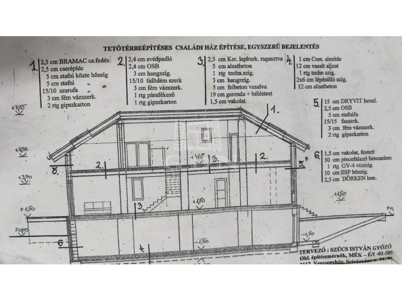 A ház 2022-es építésű, fa vázszerkezetű, külső 15 cm-es grafitos, belül cellulózzal fújt szigeteléssel. A Bramac cserépfedésű tető szintén kapott 20 cm-es fújt szigetelést a jobb szigetelésért.
