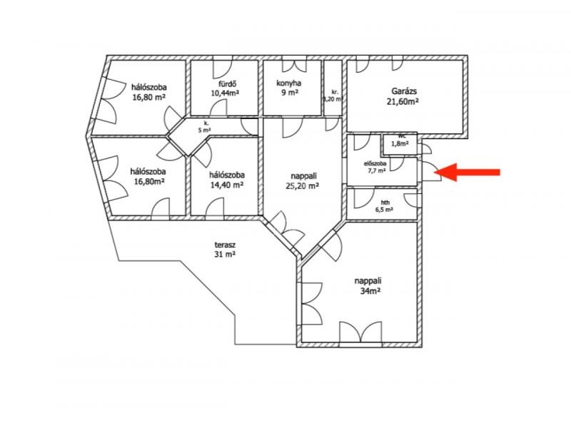 - földszint (150 nm): előszoba, fürdőszoba, wc, amerikai konyhás nappali,spájz, közlekedő, 5 hálószoba.