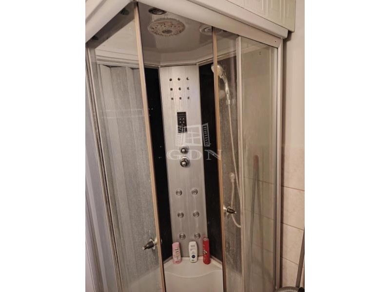 Zuhanyzós fürdőszoba, külön WC, járólap burkolattal