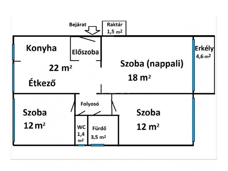 3 külön bejáratú szoba, laminált parkettával burkolva
