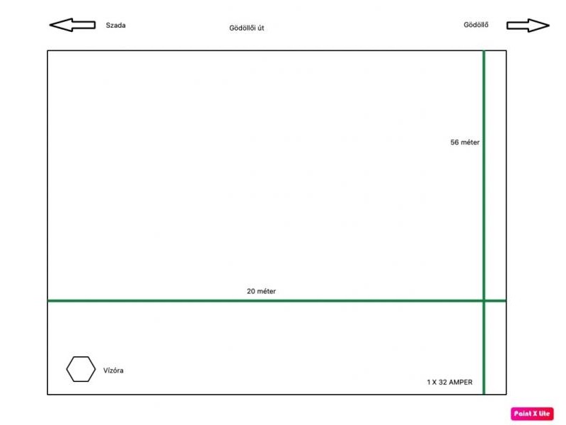 Utcafront 19,5 méter, hosszúsága 56 méter. 1 X 32 Amper és vízóra telken belül, gáz, csatorna az utcában.