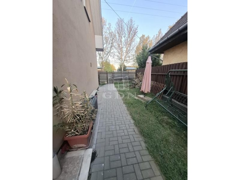 A házhoz cca 80 nm saját használatú kert tartozik, gépkocsi beállási lehetőséggel.