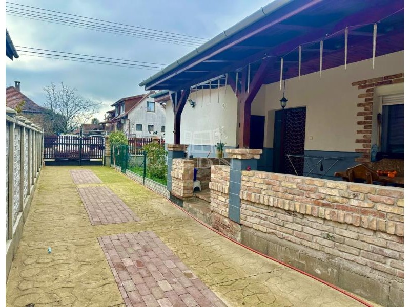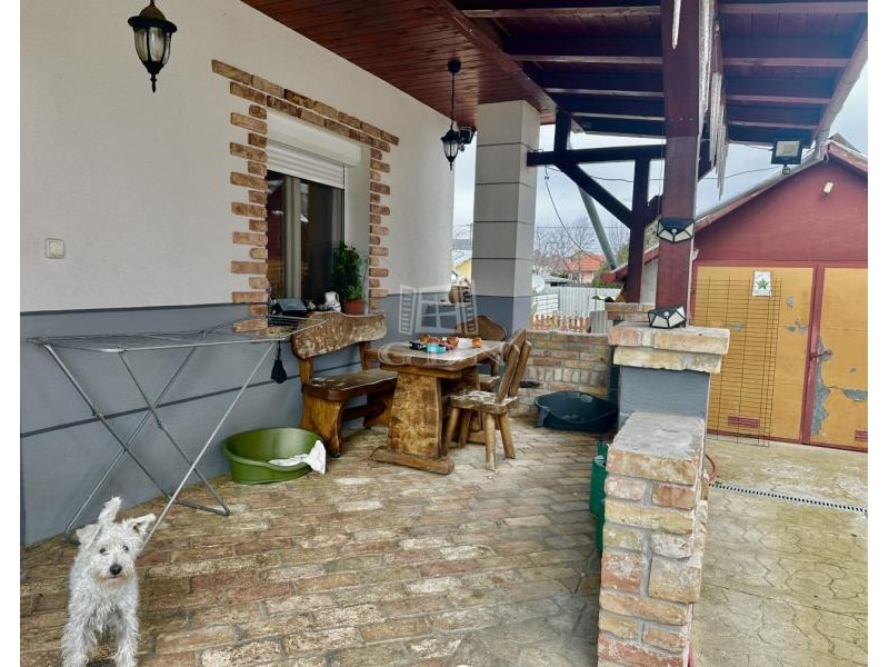 A házba, egy 25 m²-es hangulatos, szeletelt téglával díszített teraszon át jutunk be, ami tökéletes helyszín a pihenéshez és a baráti összejövetelekhez. Az ingatlan riasztó- és kamerarendszerrel ellátott.